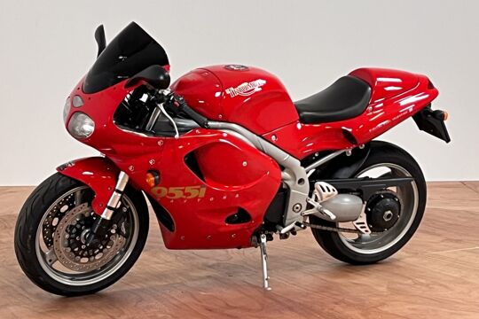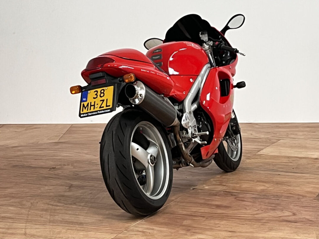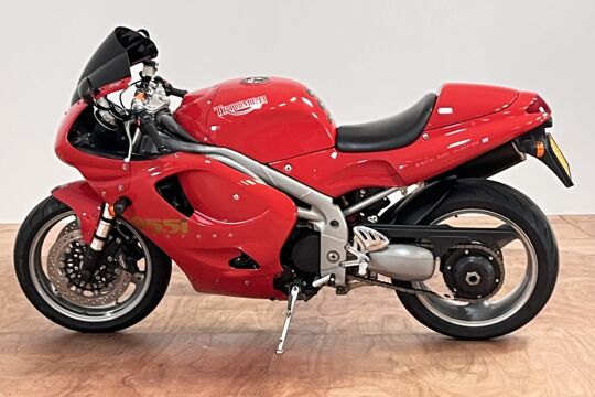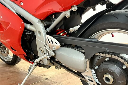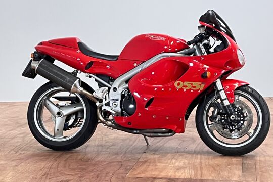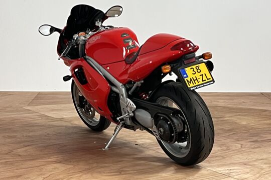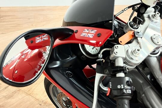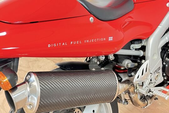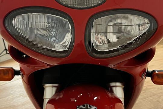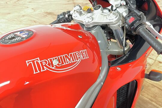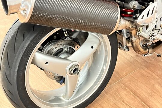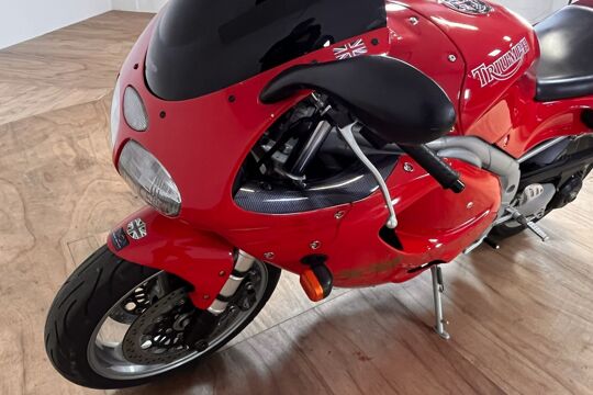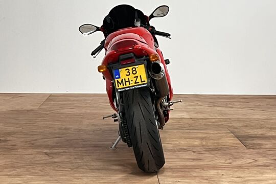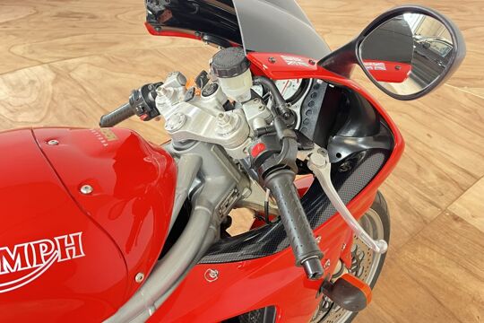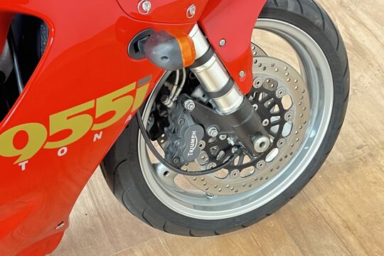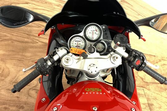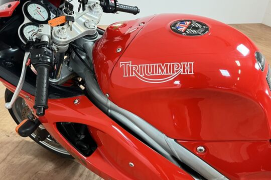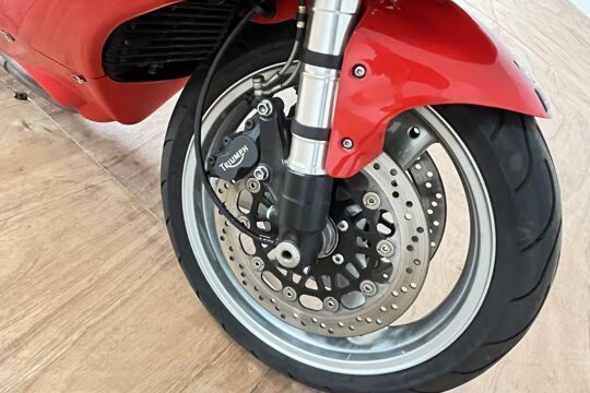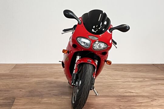 Deze prachtige Triumph Daytona 955i is een lust voor het oog en oor. De originele Triumph Carbon race can is de kers op de taart, alhoewel “not for road use” aldus het typeplaatje, but who cares….de briesende driecilinder klinkt zoals alleen een Triumph dat kan, een sound die de kenner en liefhebber uit duizenden herkent.